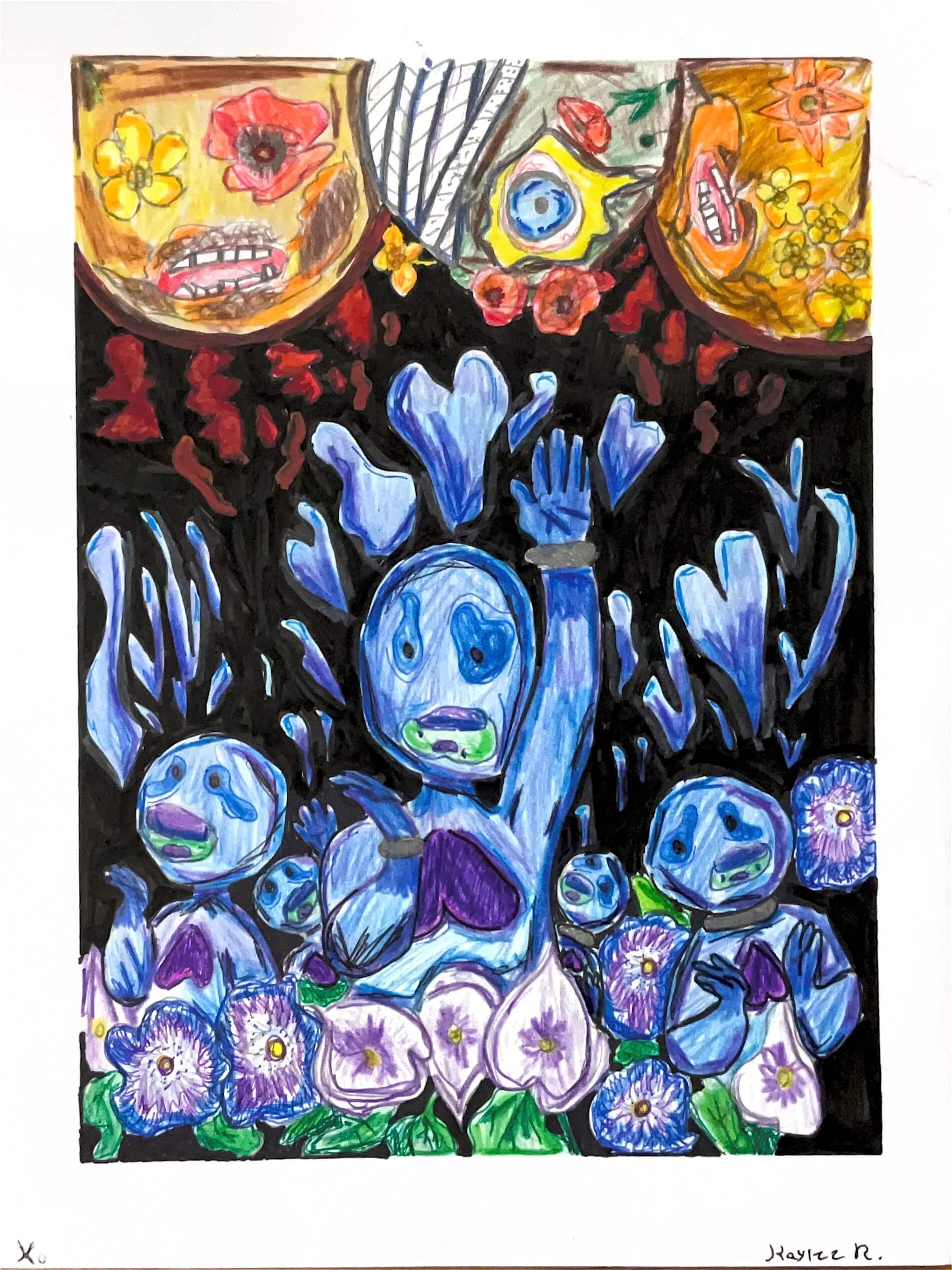 The ‘A’ in MAPS should very well stand for Art. MAPS recognizes that as the organization grows, so does our potential to reach and support students in other art disciplines. MAPS has added a visual arts component to our model to round out our focus on art education while allowing students to maximize their artistic experience and collaboration. Creating visual art, that is inspired by the poetry and music, allows MAPS students to express their feelings in new and poignant ways. The visual art brings an added dimension to the overall creative partnership and provides an even deeper emotional connection to and for the students and their school communities. This work also adds to the end of year Program Books providing a visual art component to the Poetry and Music represented.